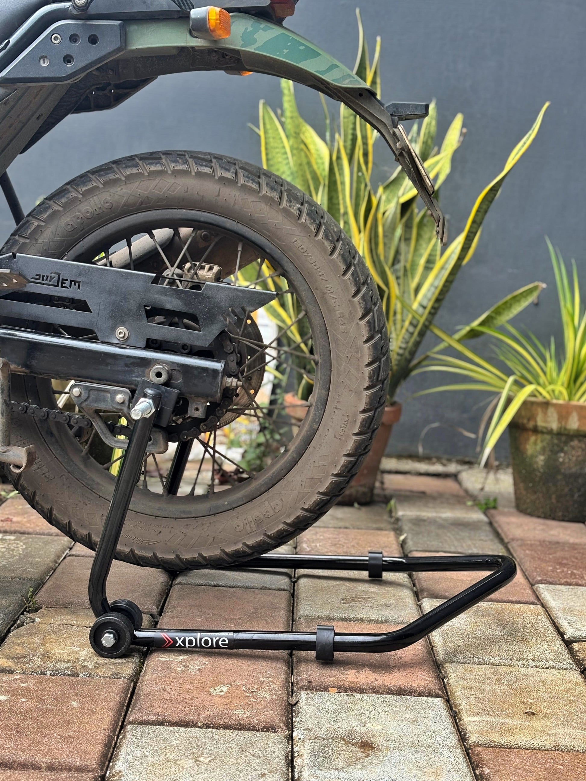 Heavy-Duty Construction: Robust rear paddock stand designed to support motorcycles weighing up to 300 kgs, ensuring stability and safety during maintenance tasks.